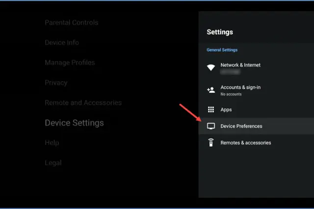 Step 7: Once finished, press the Back button twice to return to the main Settings screen. Scroll down and select Device Preferences.